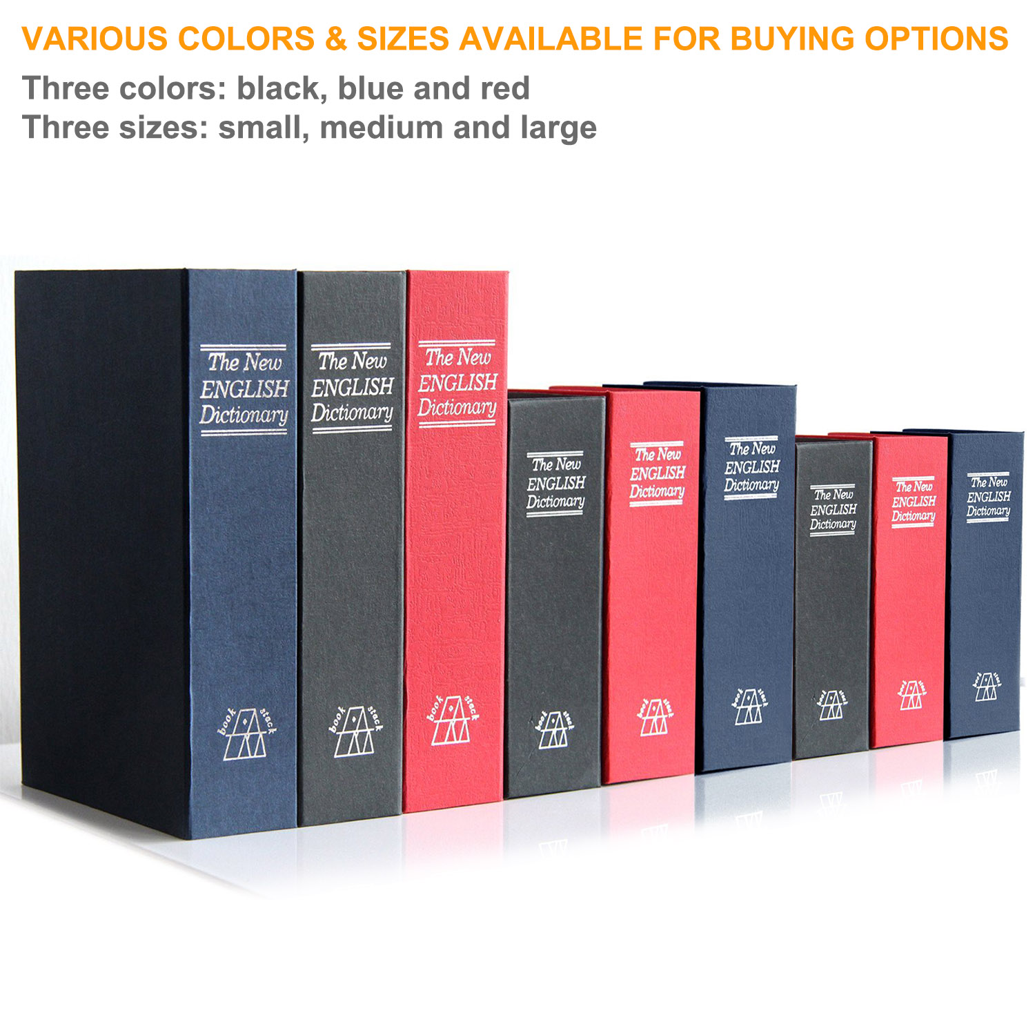 The disguised dictionary is specially designed for protecting your valuable gadgets, which features 3-number combination lock system. It looks like a traditional dictionary but much more than it. It can deceive the burglar when they steal at the situation of the criminal process is short-time. Solid steel construction interior box and real hard paper surface ensures the internal safety of valuables and for long time use. Three colors (black, blue and red) and three sizes (small, medium and large) are available. Moreover, its compact and lightweight design makes it a portable safe and perfect for home, office, RV’s, school, travel and so on.