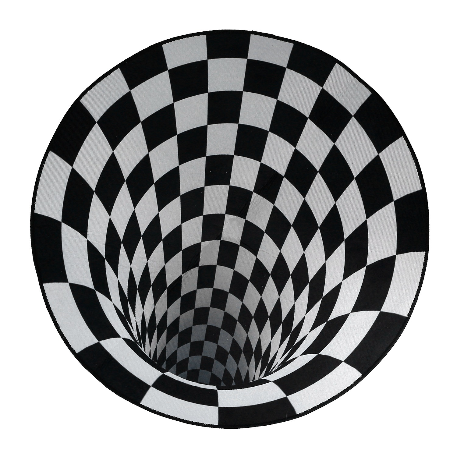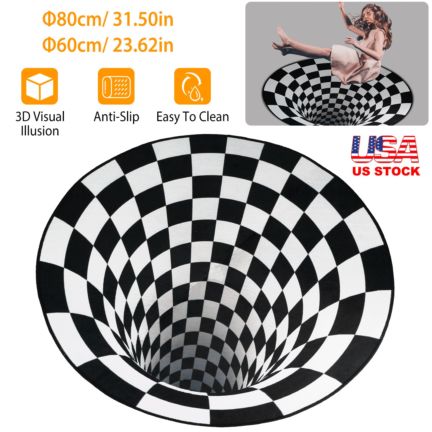 Our creative floor mat is featured with black and white checkered design that produce an optical illusion. Made of soft polyester fiber, non-toxic, odorless, soft to the touch. Anti-slip backing helps prevent sliding. A great decoration for children's bedrooms, dormitories, front door, etc..