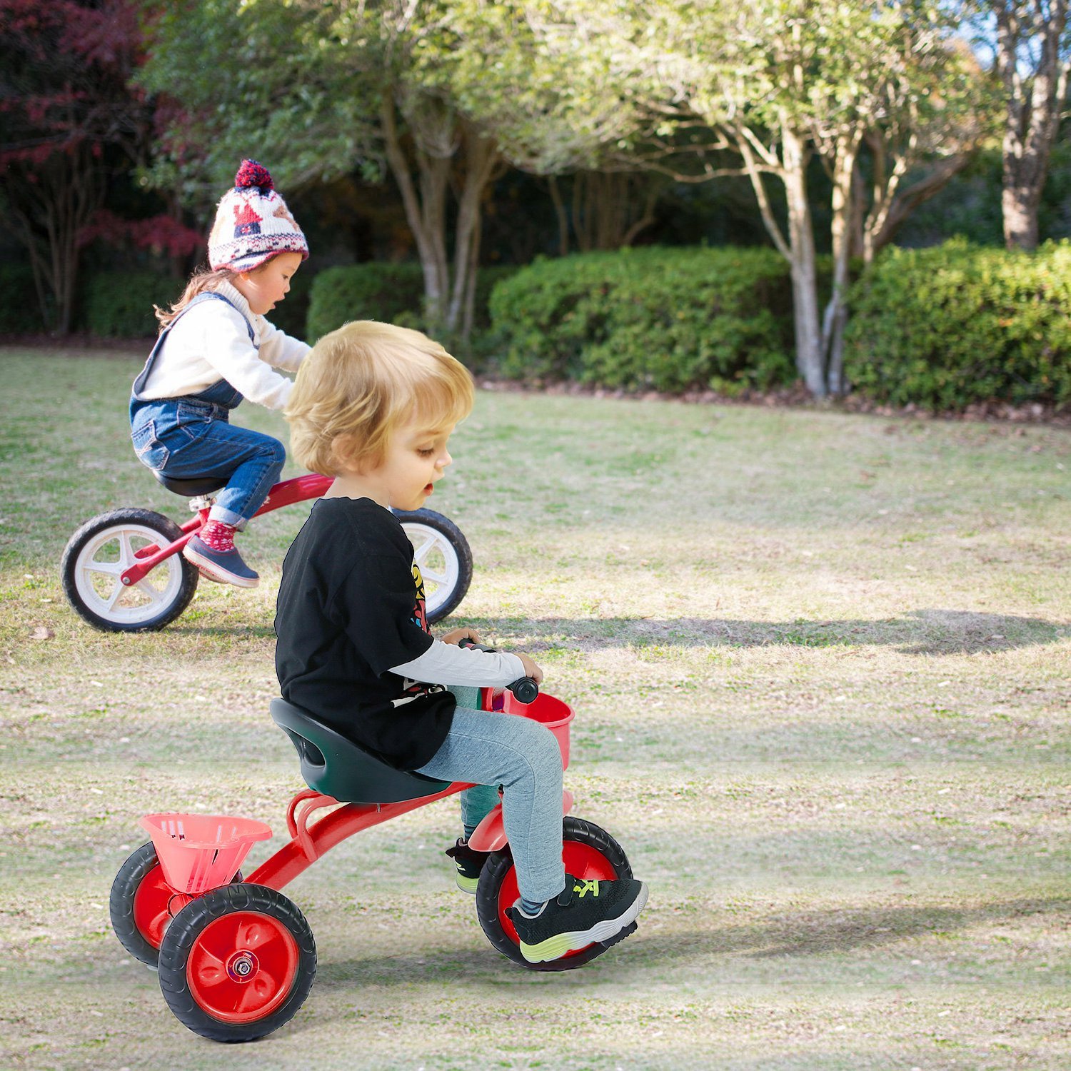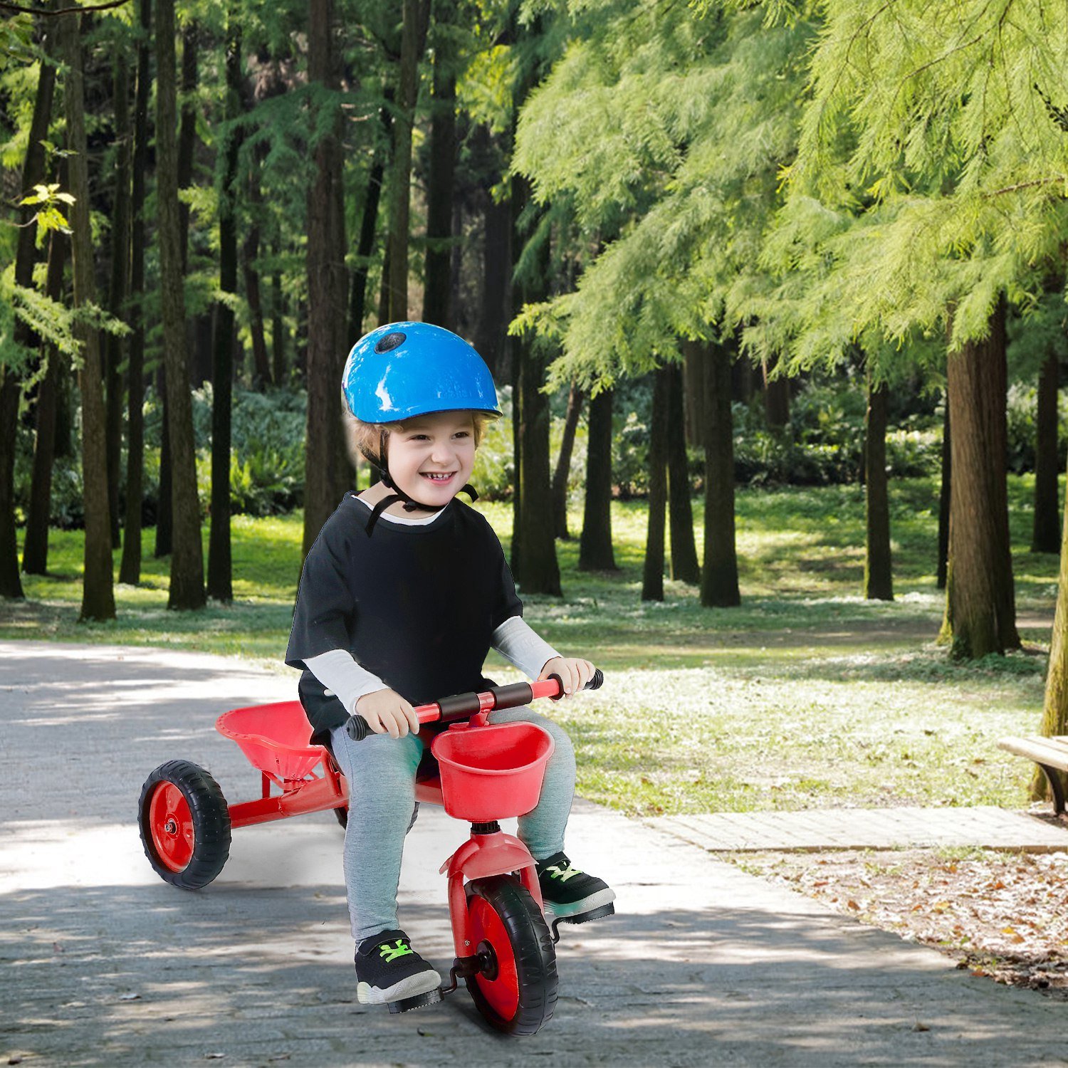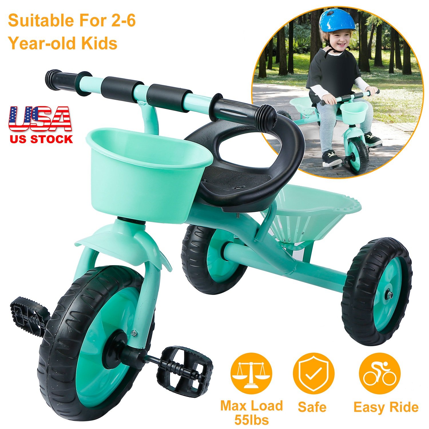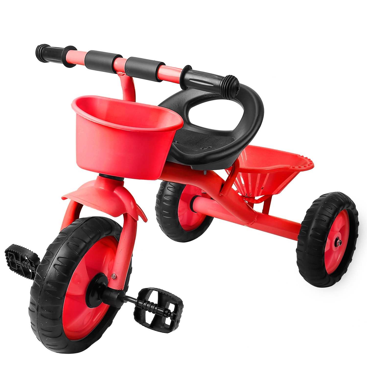 Our durable, steel framed toddler tricycle is the perfect beginner bike for 2 to 6 year-old child. Safe for both indoor and outdoor use, our bike is built with your child’s safety and entertainment in mind. Designed with EVA, quiet ride wheels, sturdy seat with back support, front mudguard, and comfort grip handlebars, you and your child will be able to concentrate completely on the adventures ahead. It is a surprising gift for your little child.