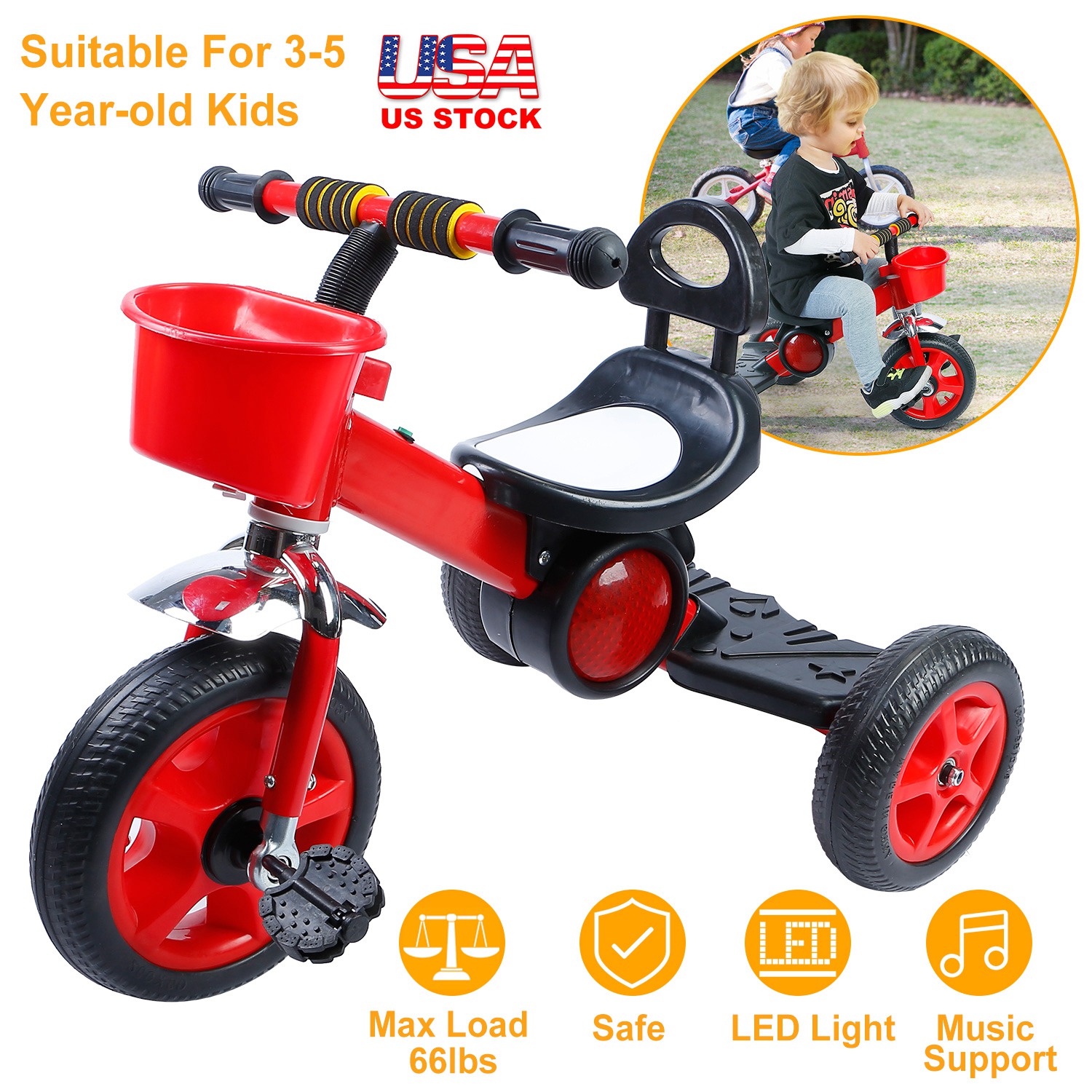 Home > Kid Tricycle Bicycle 3 Wheel Toddler Bike Indoor Outdoor Pedal Bike For Children Aged 3 To 5 w/ Light & Music