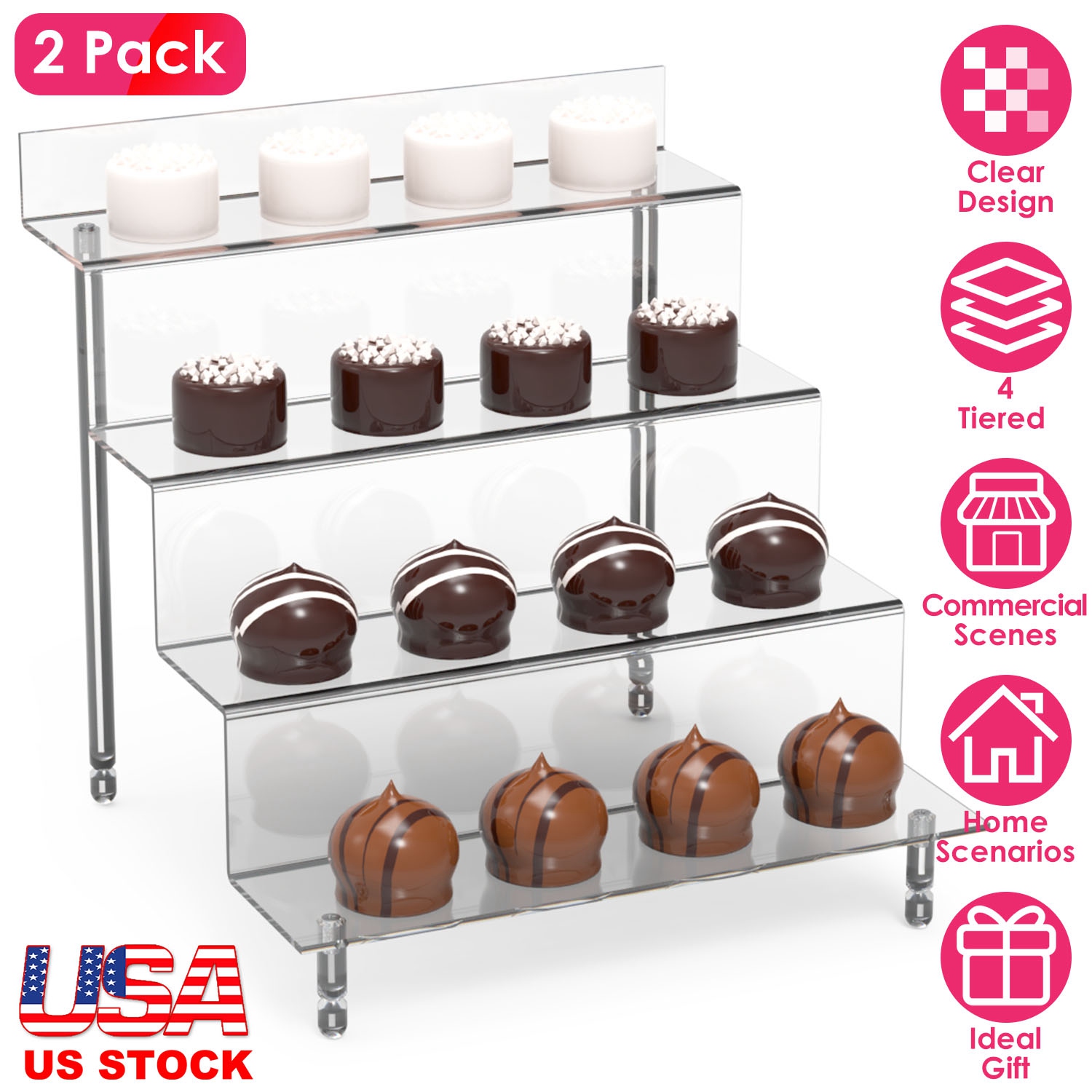 2 Pack 4 Tiered Acrylic Riser Display Shelf Display Stands For Products Clear Figure Display Shelf for Pops Action Figure Collectibles Souvenir Desser