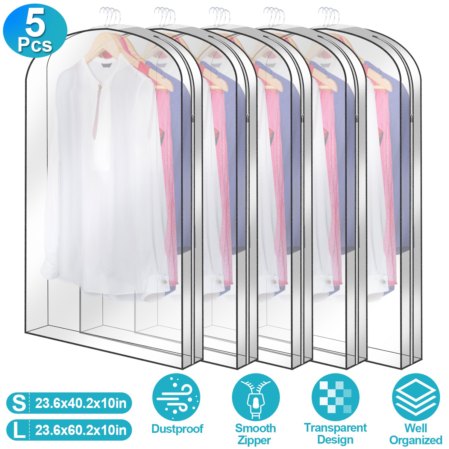 5 Pack 40In Garment Bag for Hanging Clothes Dustproof Waterproof Hanging Clothes Storage Bag Clear Transparent Suits Cover for Sweater Jacket Coat Dre