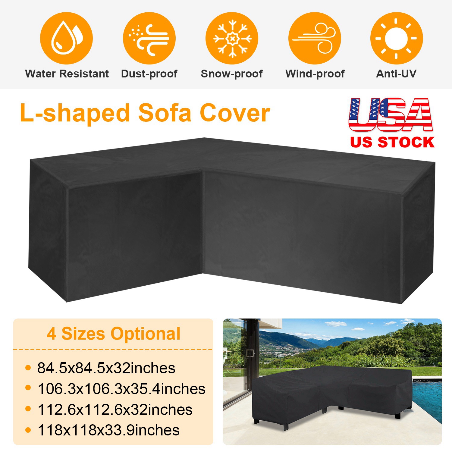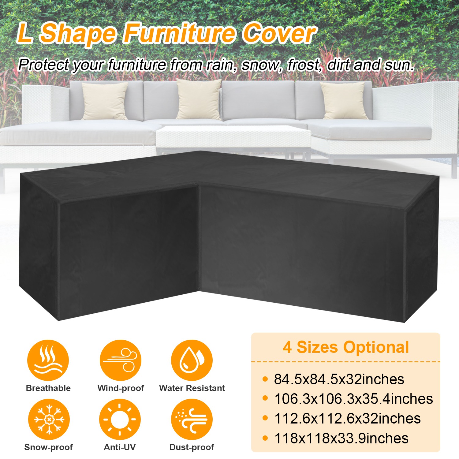 Home > 112.6x112.6x32inches Outdoor L Shape Sofa Covers Water Resistant Dustproof Furniture Covers Sectional Sofa Protectors Table Chair Cover Garden Patio