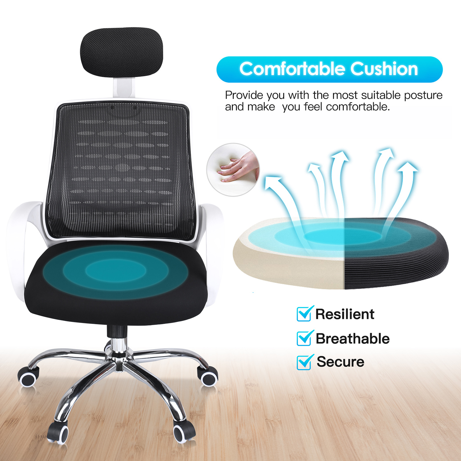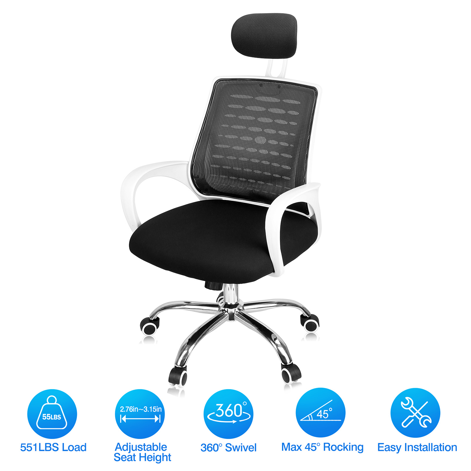 Come with high-elastic sponge cushion seat and ergonomic mesh backrest, our office chair is super soft and breathable for maximum comfort. 2.76-3.15in Adjustable seat height, 360° swivel design and 45° rocking angle allow you to adjust to the most comfortable height to sit or rest on it. You can also move it to anywhere easily with 5 smooth rolling casters. Great to use it as an ergonomic office chair, gaming chair, home desk chair, etc..