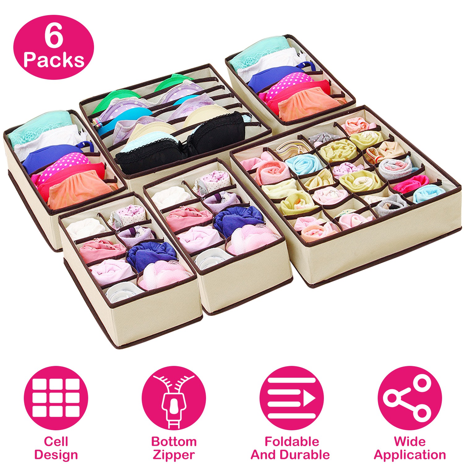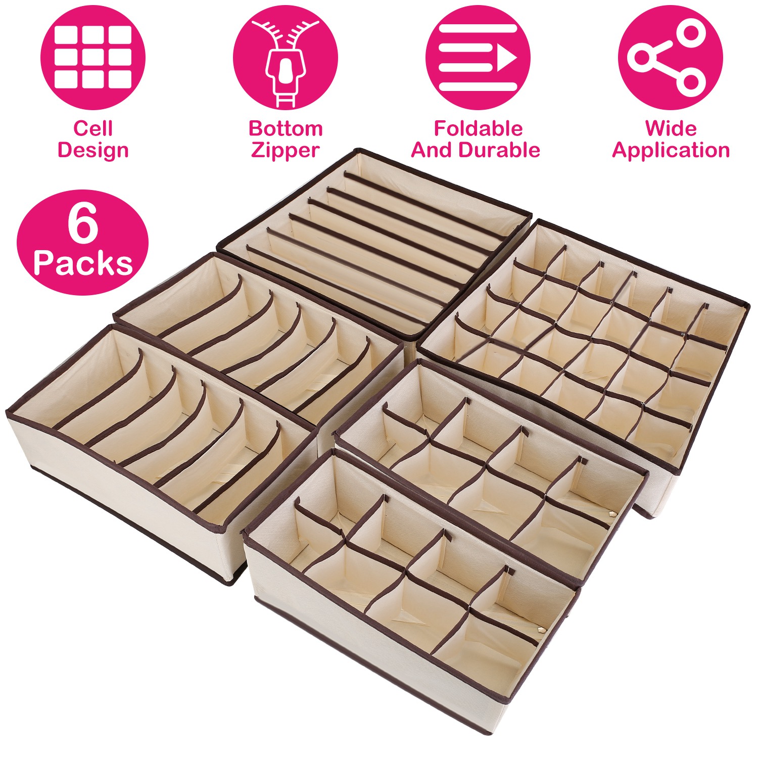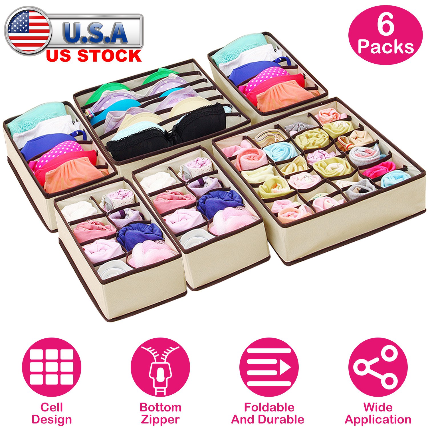 6Pcs Foldable Underwear Sock Bra Organizer Drawer Divider Container Bin Storage Box for Tie Handkerchief Belt