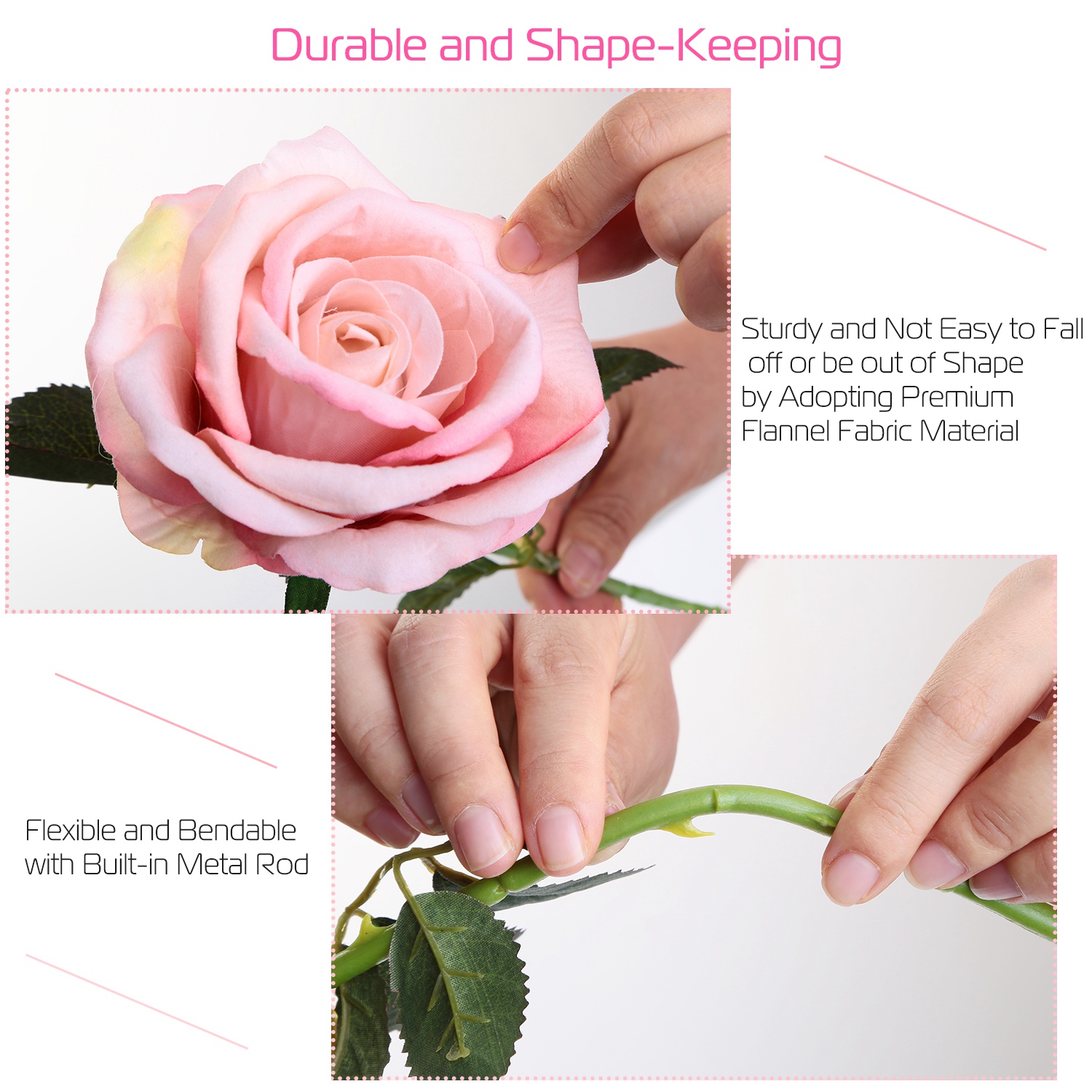 Made from eco-friendly flannel fabric material, our artificial rose is sturdy, durable and not easy to fall off or be out of shape. And adopting premium stimulation process, from the petal to the stem, our artificial rose naturally looks like real rose. Additionally, coming with 10 Pcs, our artificial allows you to variously decorate your home, office or any place you want, our artificial rose not only can decorate your home but also your mood. Have a nice day!
