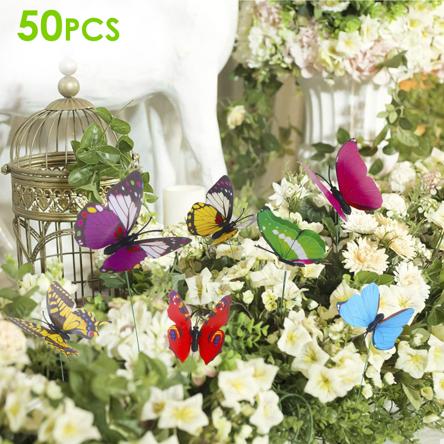 Home > 50Pcs Butterfly Stake Ornament Waterproof Yard Plant Flower Bed Pot Ornament Bendable Stake Garden Butterfly Decor