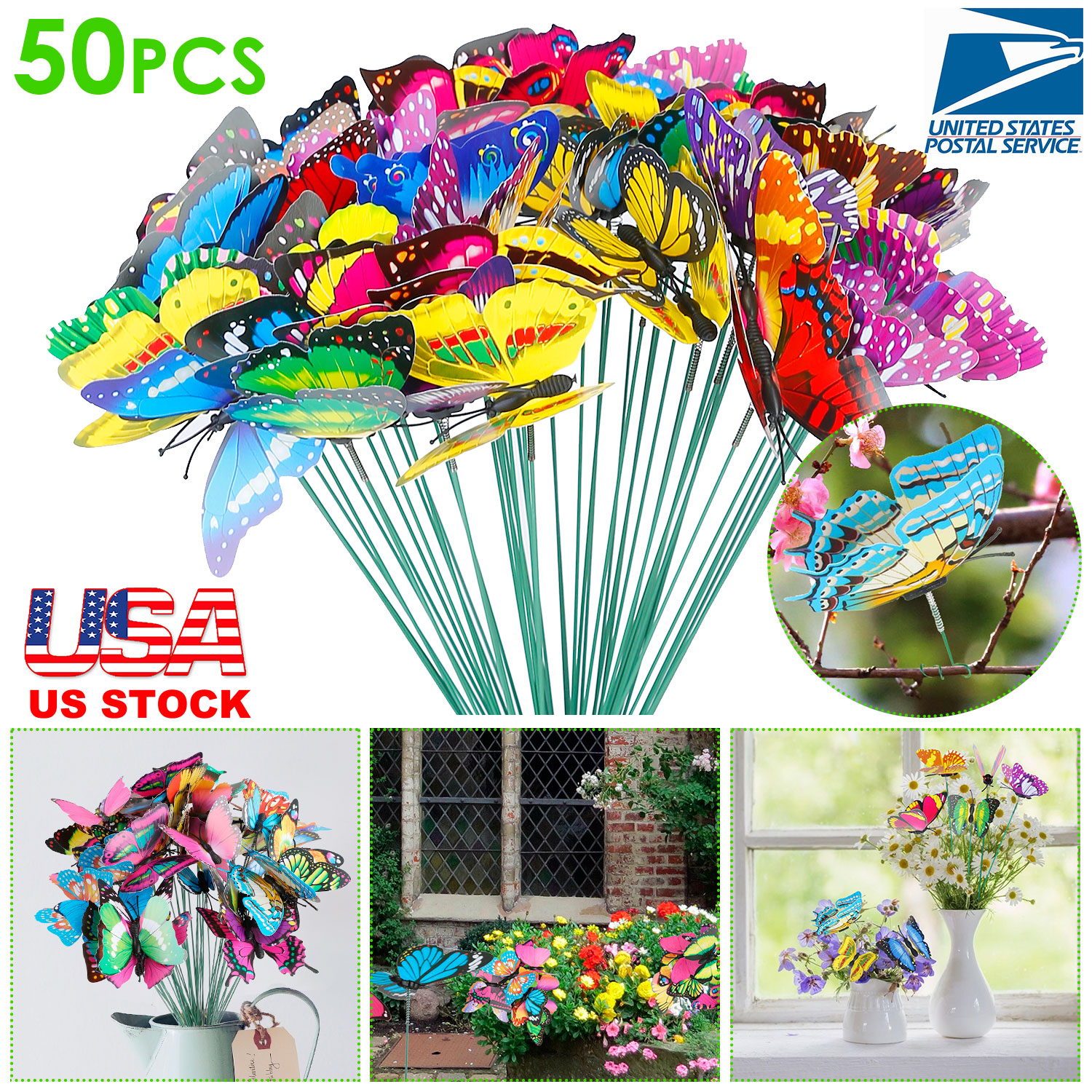 50Pcs Butterfly Stake Ornament Waterproof Yard Plant Flower Bed Pot Ornament Bendable Stake Garden Butterfly Decor