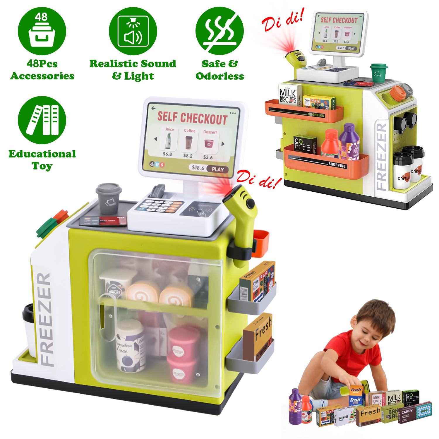 Home > 48Pcs Pretend Cash Register Play Toy Set With Scanner Play Cash Food Role Play Coffee Machine Grocery Store Mini Supermarket Playset For Boys Girls Ag