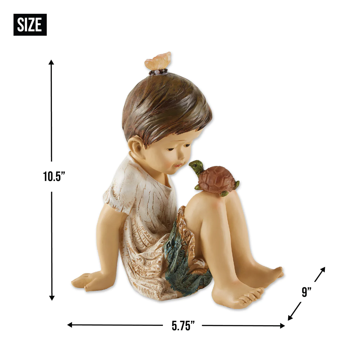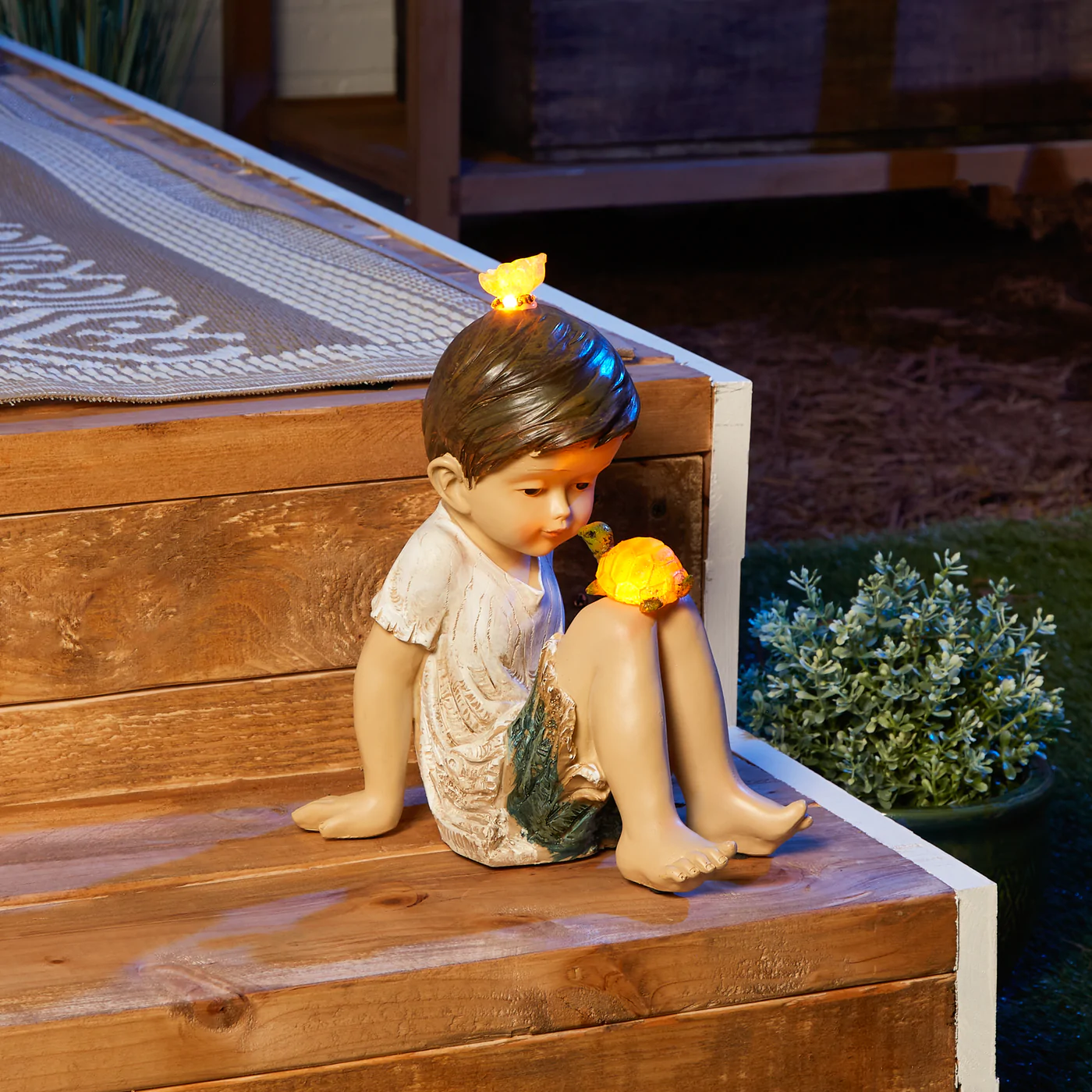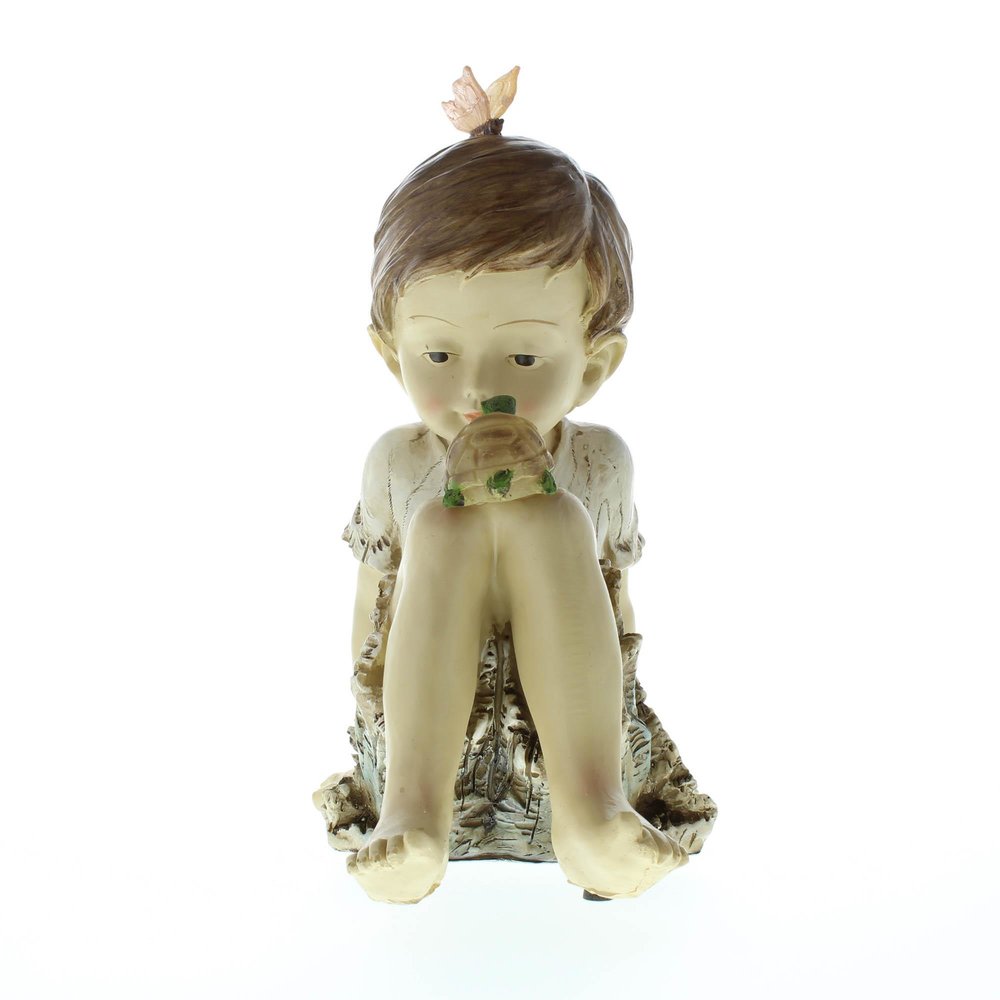 • A bright-eyed boy shares a playful moment with his beloved pet turtle and a visiting butterfly joins in the fun. Makes a playful lighting and décor addition to either your indoor or outdoor space!
