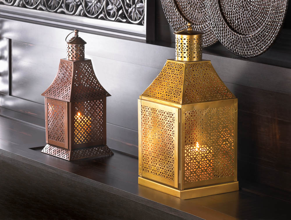 • Light a single candle inside and you’ll get lost in the captivating beauty of light and shadows cast from this metal lantern. The amazing all-over cutout pattern and classic shape will enhance any decor style, from elegant to eclectic.