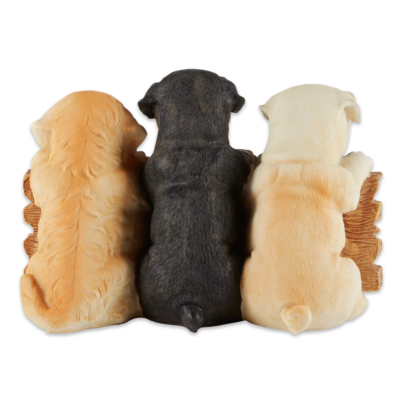 • Welcome friends and family to your home with eternally cute puppy dog faces! This charming welcome sign features three little pups holding a wood-style sign decorated with the word 'Welcome'.