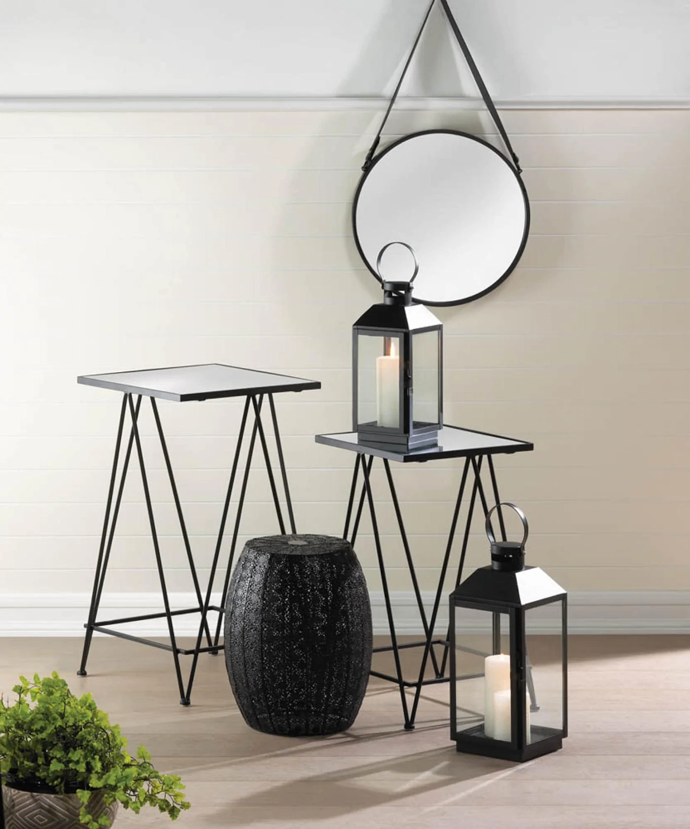 • This marvelous Moroccan style decorative stool features an intricate and dazzling pattern and is a luxurious side table, display stand, or stool. Place it indoors or outside and admire its glamorous black designs.