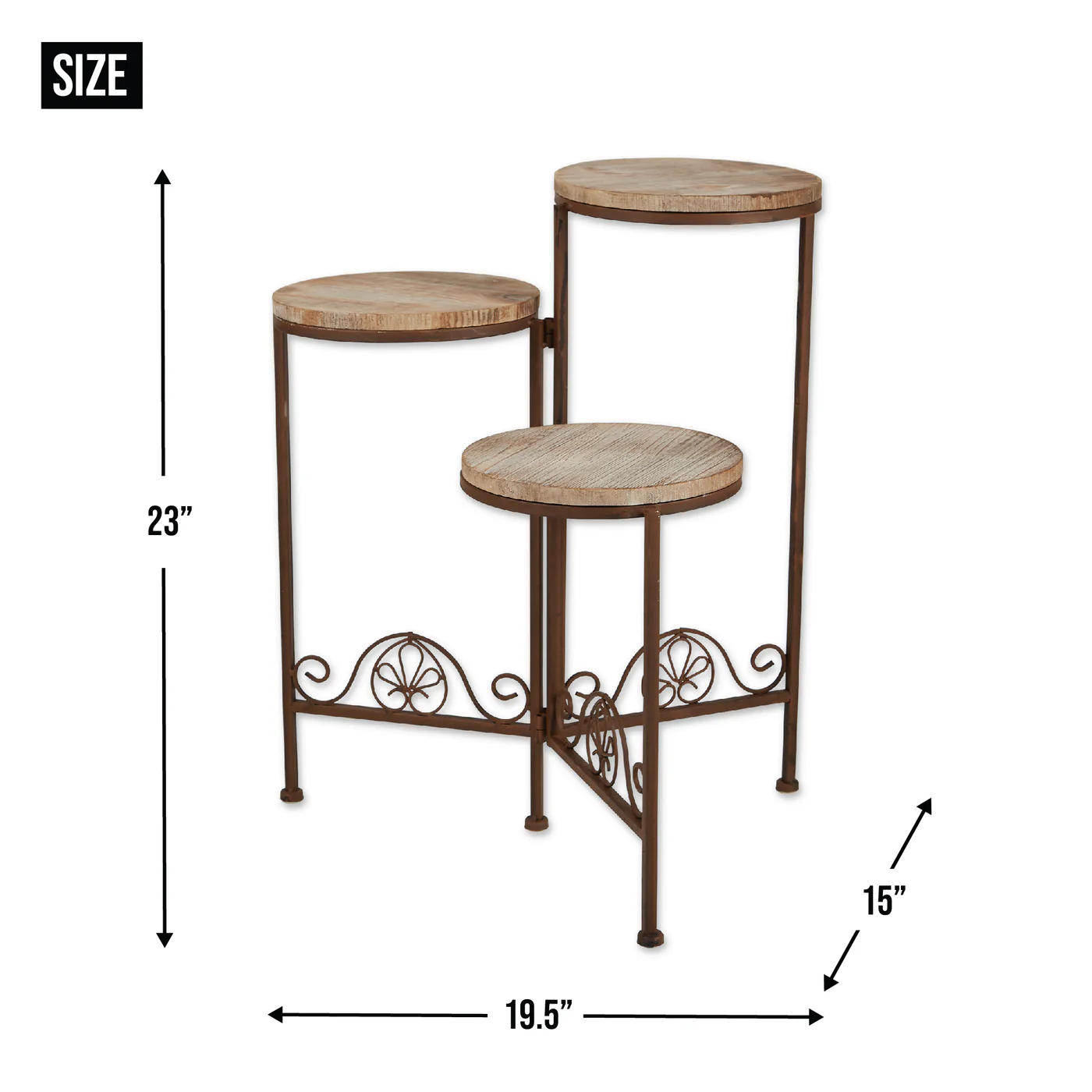 Vintage-Inspired Rustic Triple Plant Stand for Indoor and Outdoor Decor