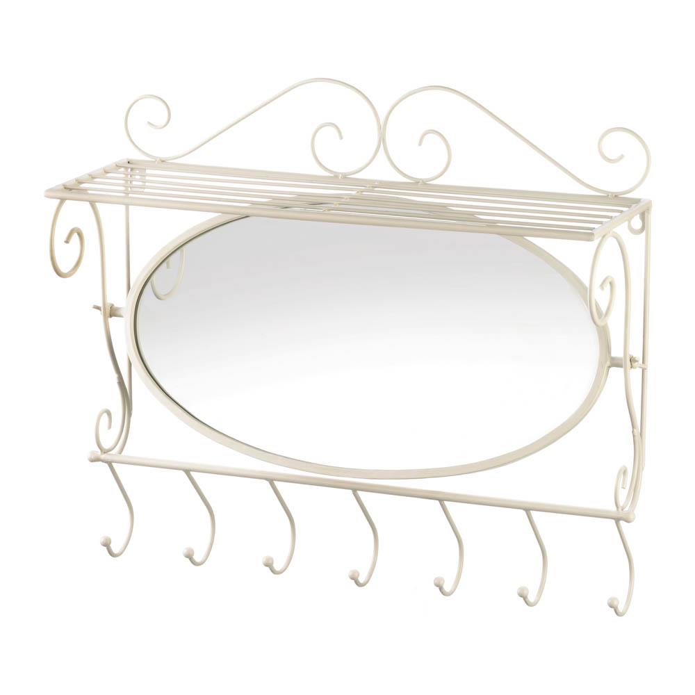 • Wall shelf with mirror has multiple uses, place in a bathroom to hang towels, near the entryway to hold jackets and scarves, or in your master closet for belts and accessories. A great housewarming gift or personal home décor piece!