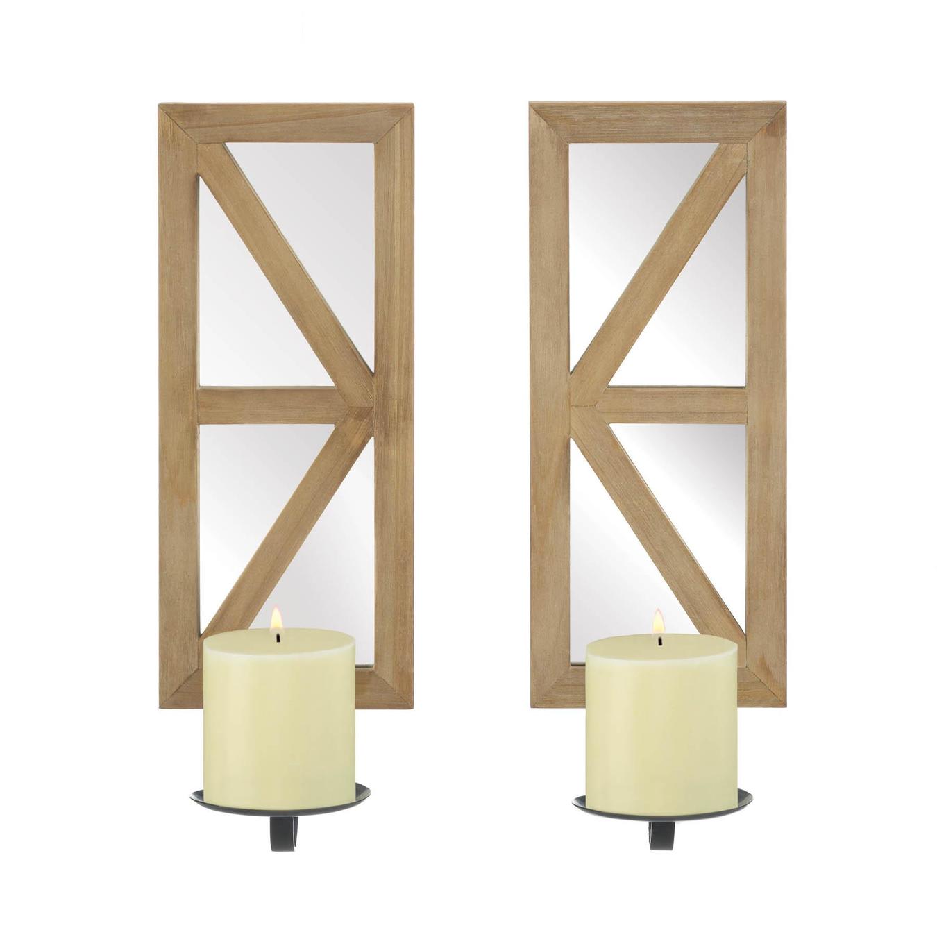 • Add warmth and style to your walls with this wood candle sconce set that creates an eye-catching blend of modern and traditional design elements.