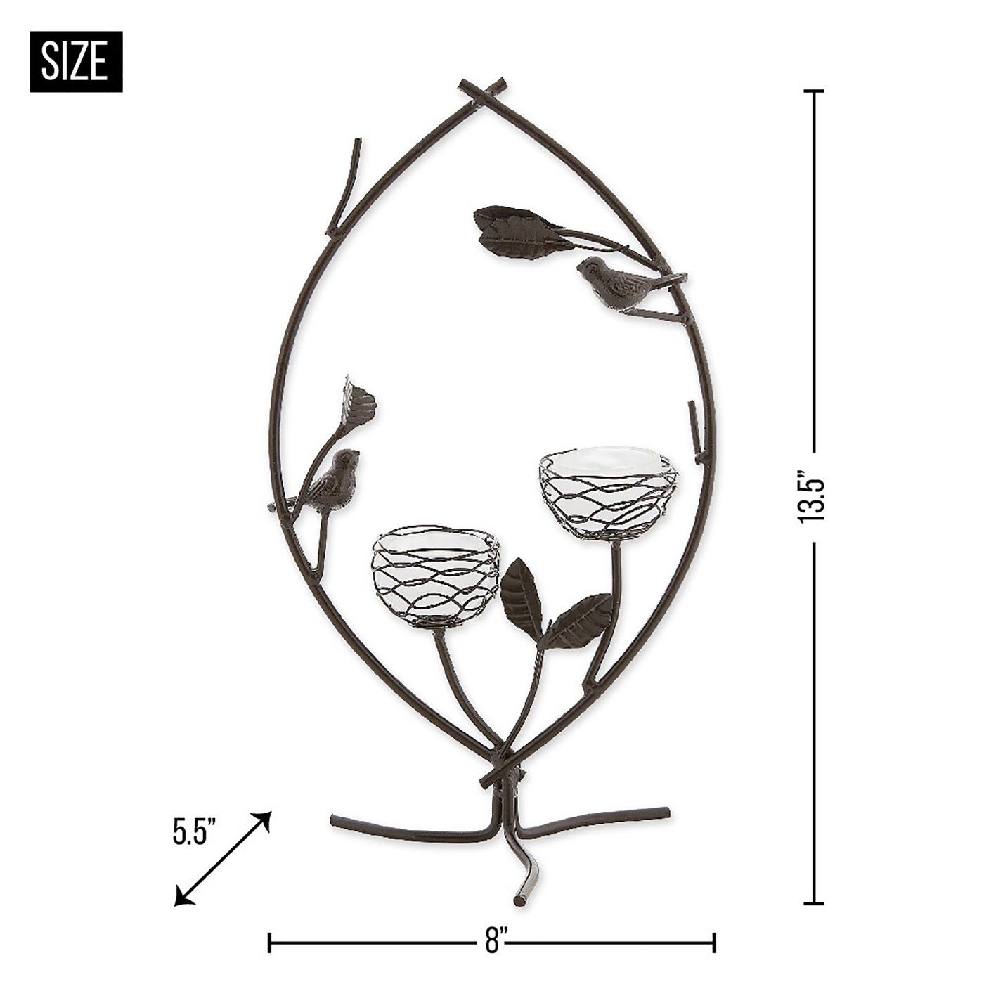 • Fill your home with ambient glow and a touch of whimsy with this nature inspired tealight holder! With two votive candle cups accompanied by iron birds, this lighting décor will bring light and cheer to your home.