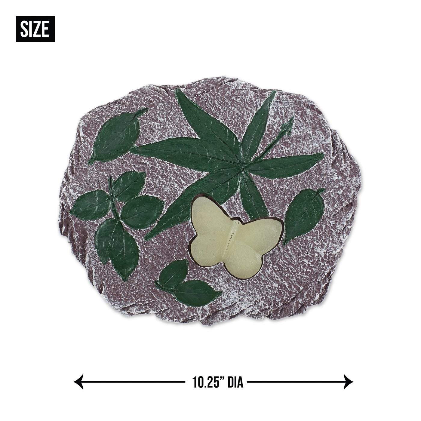 • The stepping stone weighs 2.4 lbs. and measures 10.25 inches in diameter and 0.5 inches thick.
