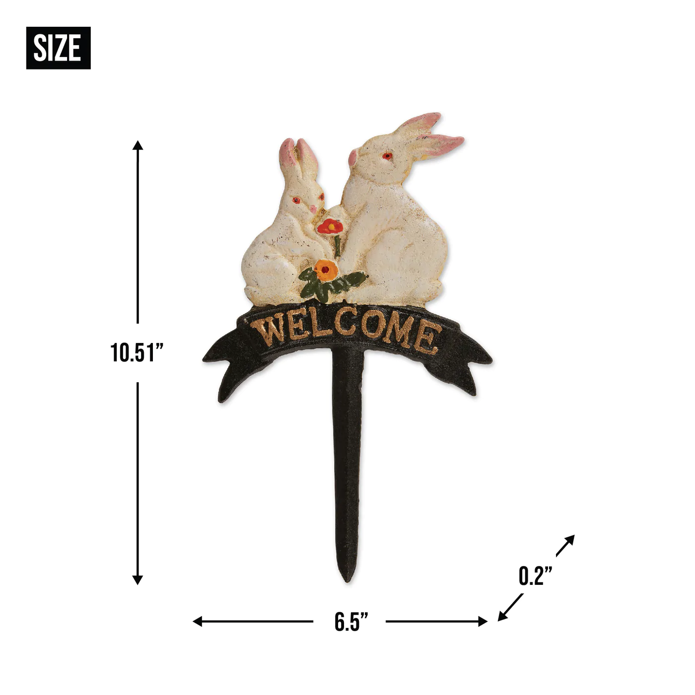 • Charming rabbit family garden stake is made of iron and measures 6.25x0.5x10.5 inches