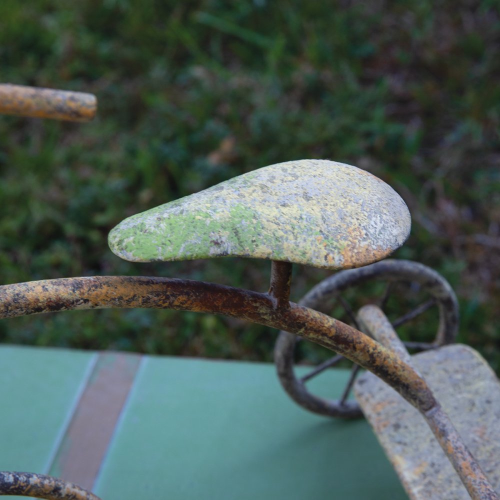 Step back in time with this charming tabletop treasure! Crafted with meticulous attention to detail, this tabletop toy trike exudes the classic charm of a bygone era. Its intricate design and distressed finish make it an instant conversation piece. This item is crafted from metal.