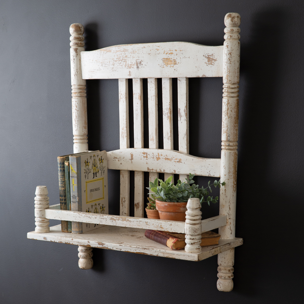 Bring your farmhouse decor to a new level with this distressed chair shelf. You will be able to display plants, books, and other small items on its ledge. The resemblance to a chair makes this shelf very unique. This item comes fully assembled.