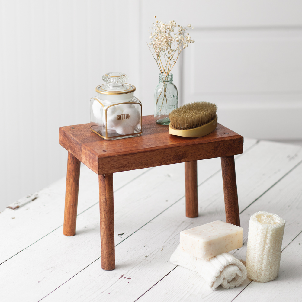 A simple, yet rustic farm footstool would be ideal for you to kick your feet up on at the end of a long day. It is fashioned fully of polished wood and sits 8¼'' high off the floor. Real wood is a product of nature, and as such, no two pieces are alike. Variations in grain, patterns, and color are to be expected and help create a beautiful and unique one-of-a-kind piece.