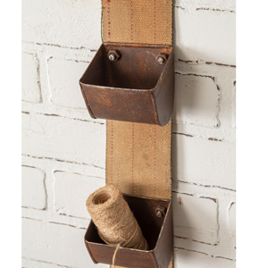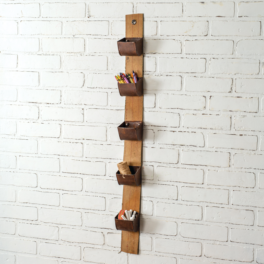 This unique hanging utility belt hangs 35½'' and includes 5 metal boxes for storage.