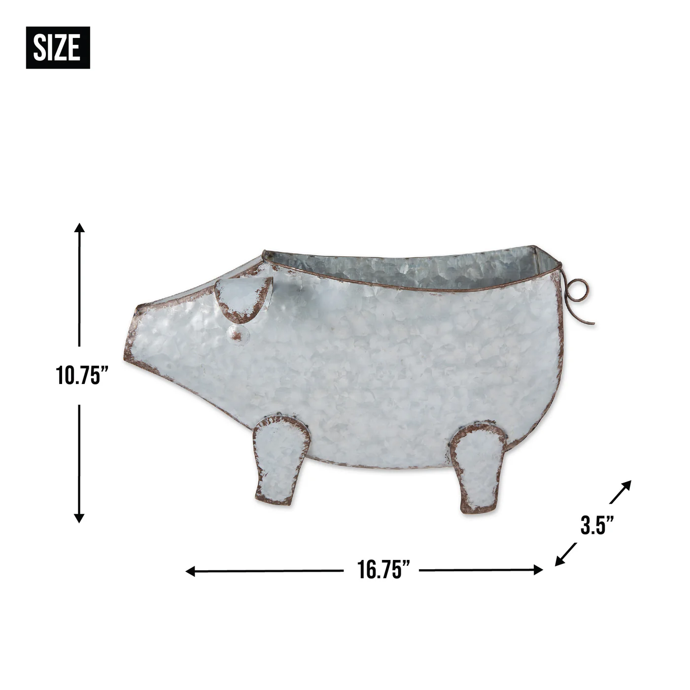 Galvanized Pig Wall Planter - Rustic Farmhouse Decor for Indoor or Outdoor Use